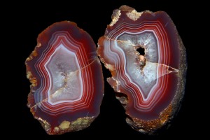 Agaty to szczególne kamienie. Na pierwszy rzut oka wyglądają jak setki innych minerałów: niepozornie i szaroburo. Ich piękno jest jednak ukryte – po przecięciu i oszlifowaniu mienią się niepowtarzalnymi kolorami i wielowymiarowymi warstwami.