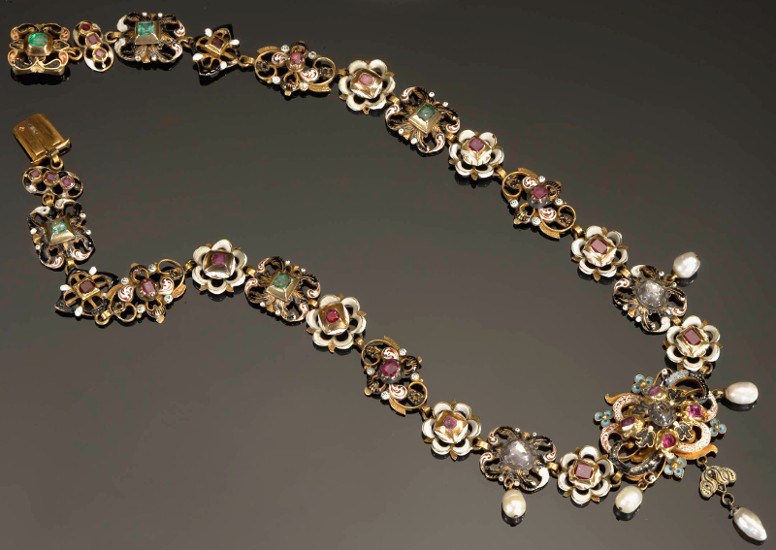 Agaty komponowano z perłami, symbolem epoki, i złotem.