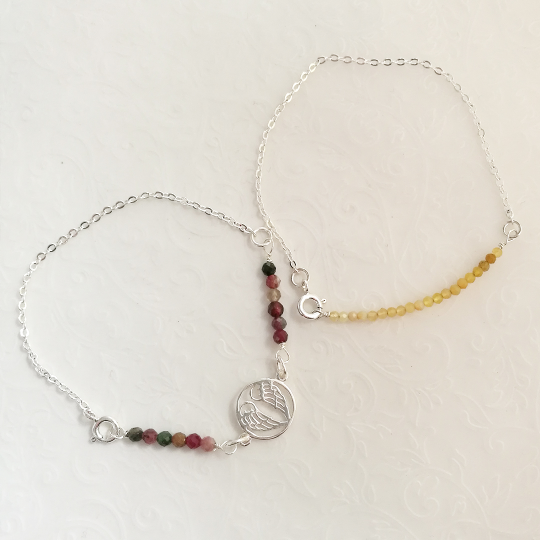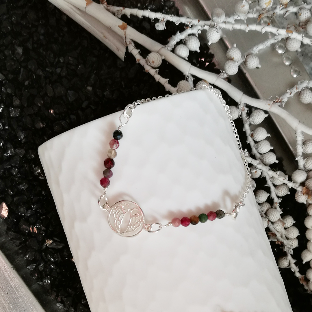I gotowe! Bransoletka z uroczymi anielskimi skrzydłami i cudnymi wielokolorowymi turmalinami czeka, aż ją założysz. Możesz wybrać swoje ulubione kamienie oraz dowolną przekładkę. Moje bransoletki są delikatne i bardzo kobiece. Do tego mają śliczne wiosenne kolorki, które rozświetlają mi resztę zimowych dni 🙂