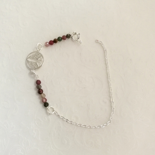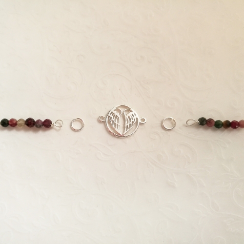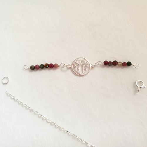 Niedawno pokazywałam Wam 7 pomysłów na taką biżuterię. Dziś kolejna propozycja, tym razem na bransoletkę. Przeglądając drobne kamienie zachwyciłam się turmalinami. Ich bogactwo kolorów, mnogość odcieni zieleni i różu oraz blask, są niesamowite. Oprócz kamieni użyłam równie popularnego łącznika z anielskimi skrzydłami.