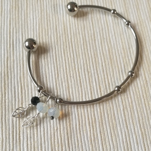 I gotowe! Twoja bransoletka w stylu boho na bazie ze stali chirurgicznej z zawieszkami z kryształków i kamieni czeka na założenie 🙂