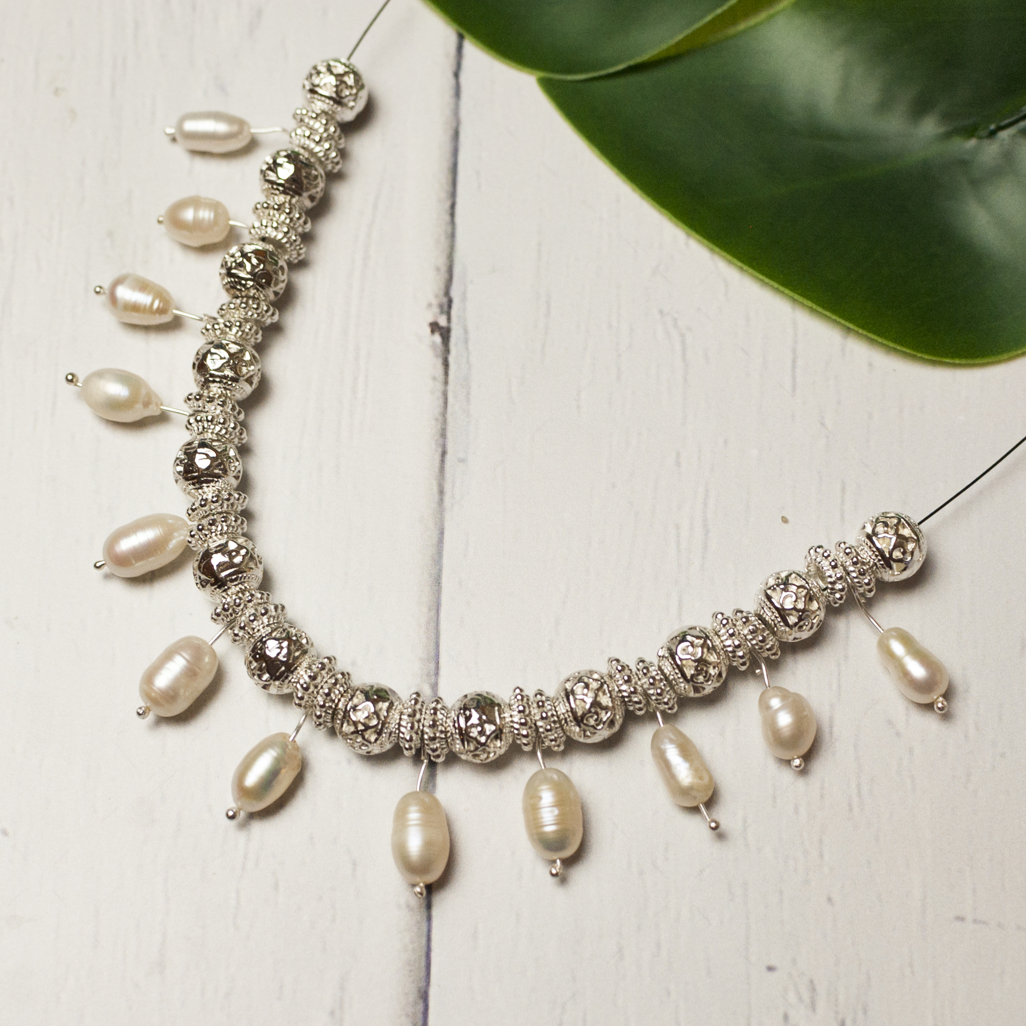 Przeglądając przepastne szuflady naszego sklepu trafiłam na te cudowne perły rice i pomyślałam, że świetnie sprawdzą się jako element naszyjnika. Dobrałam do tego srebrne elementy i tak powstał ten tutorial na naszyjnik z perłami rice, który ma w sobie coś z rockowego charakteru i klasycznej elegancji.