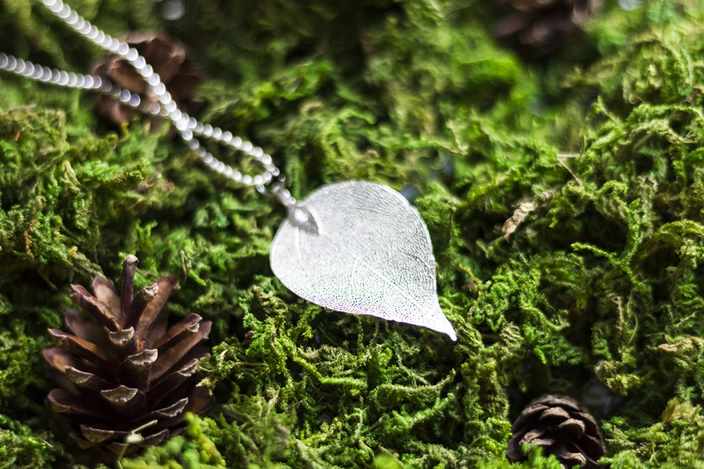 W tym wypadku charakter naszyjnika nadaje się odpowiednim wyborem pokrycia liścia (np. kolorem starego złota) i tym, na czym go zawiesisz (rodzaj splotu łańcuszka, jego długość itp.).