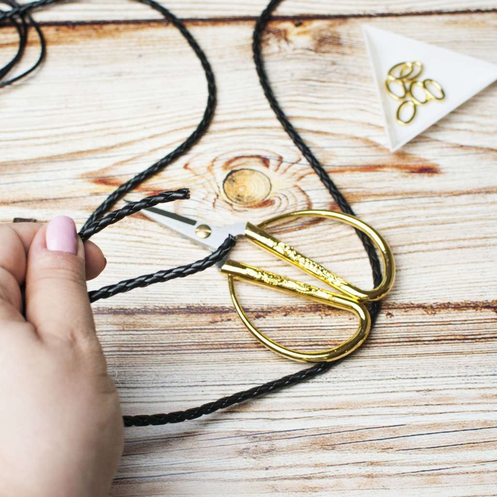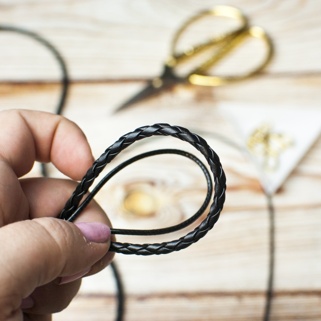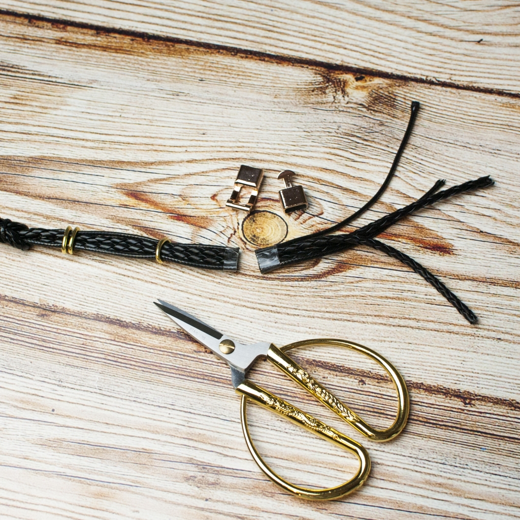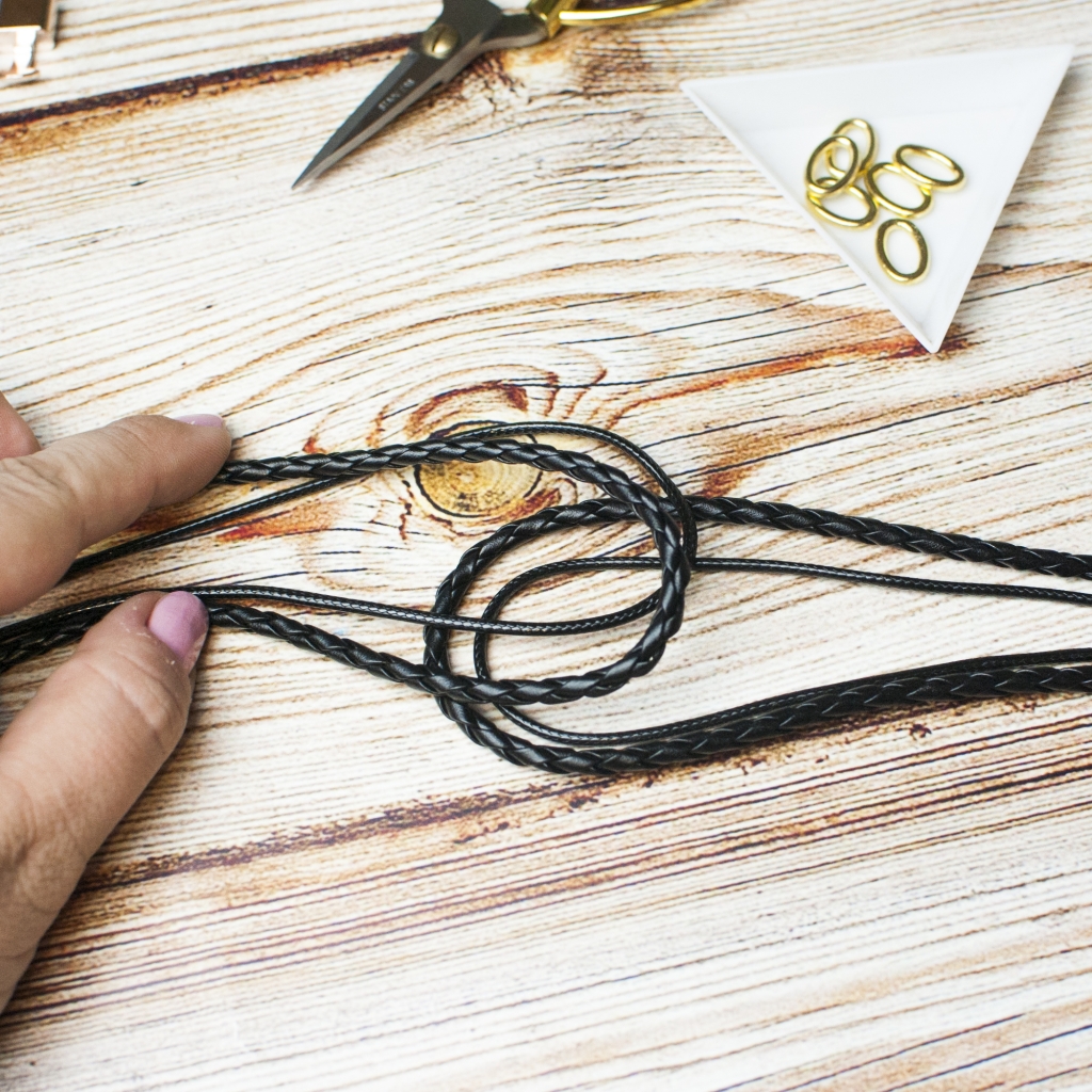 Krok 1. Rzemień oraz sznurek przetnij w połowie długości.