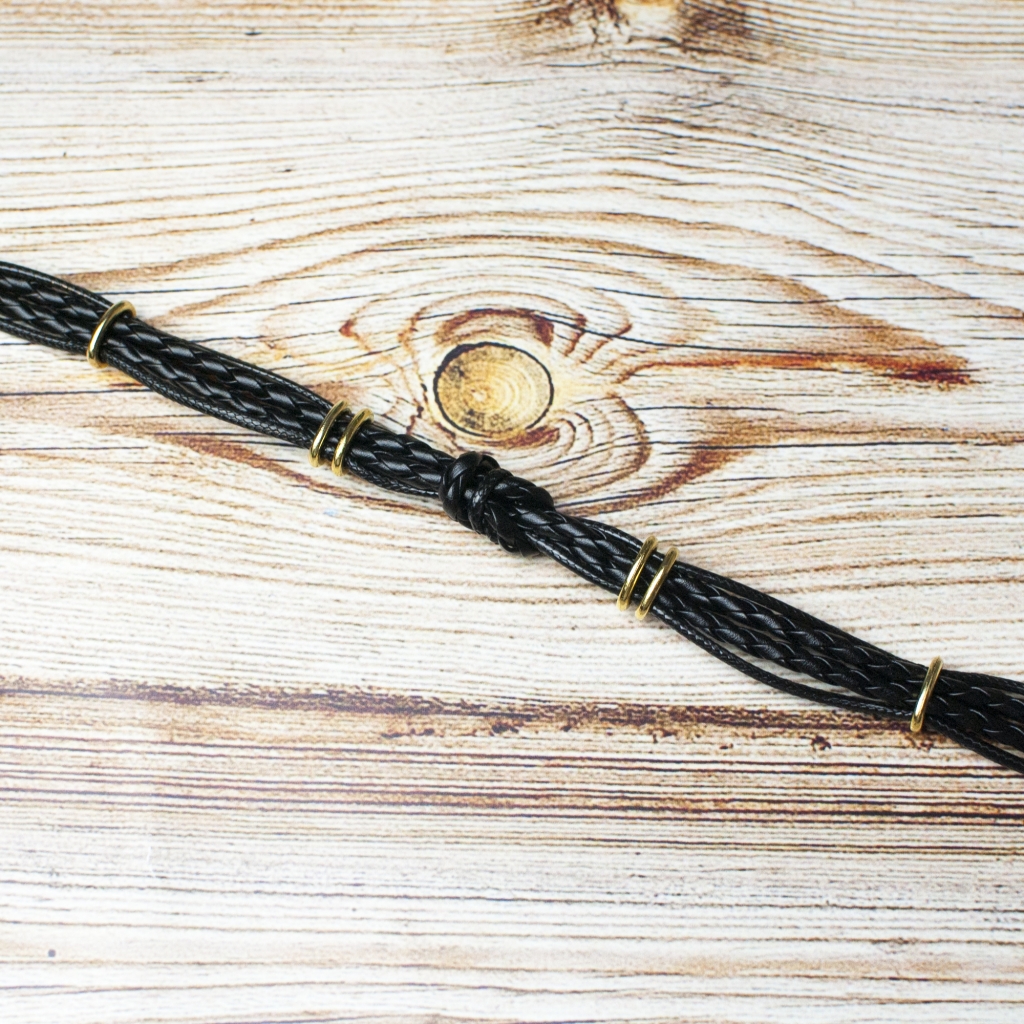 Modna bransoletka męska z rzemyka i sznurka czeka, aż podarujesz ją bliskiemu mężczyźnie. Dzięki stonowanej barwie dobrze sprawdzi się do codziennego ubioru, a złote koraliki dodadzą luksusowego akcentu.