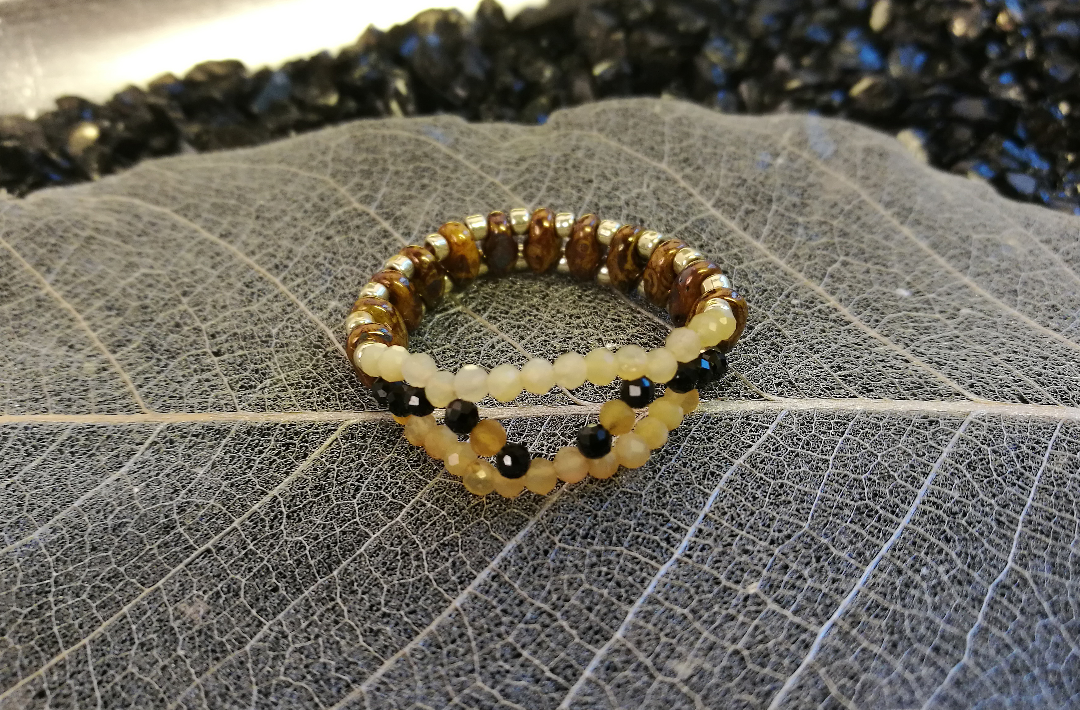 - bransoletka z kamieni w kontrastowych kolorach, np. bieli, czerni i czerwieni,